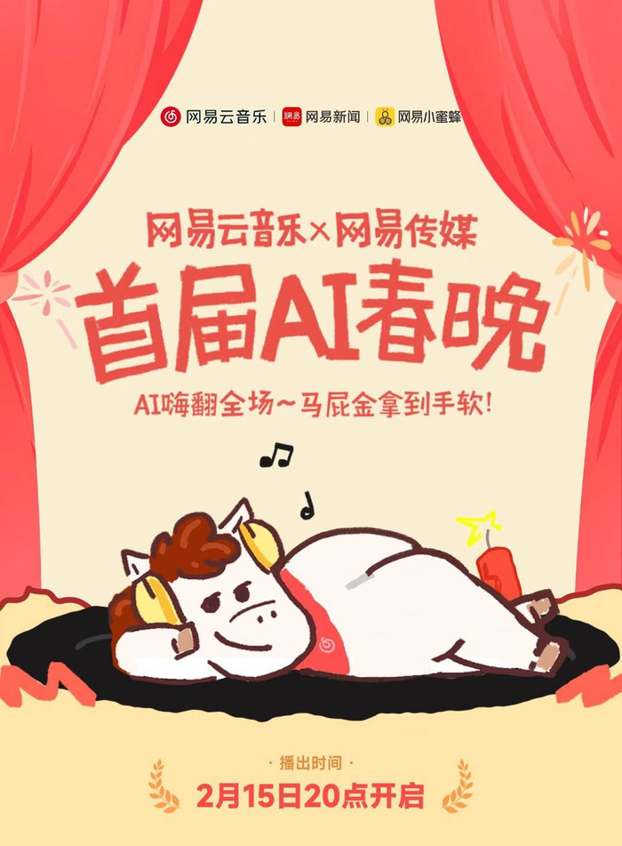 2月15日晚,网易云音乐网易传媒聚会举办的首届AI春晚暨“马年春节马屁大会”隆重开播,饱读动庞大网友在新的一年多夸夸我方,“多拍拍我方马屁”,上线后广受用户好评,被誉为“全网含梗量最高的晚会”。