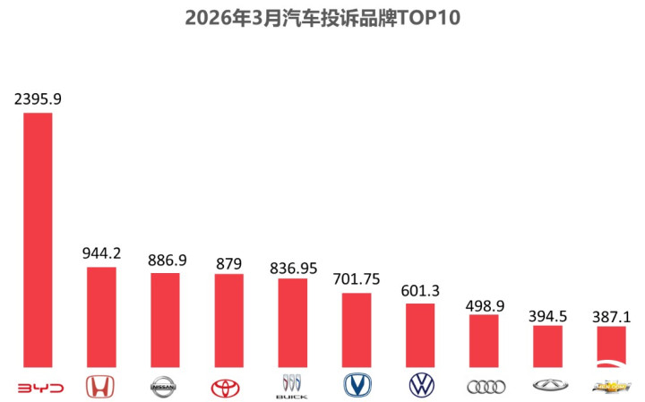 以下是2026年3月国内汽车质地投诉指数的具体分析:
