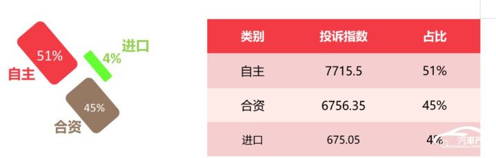 从涉诉车企类别来看,自主车企的投诉指数攀升至7715.5,okooo澳客app占比达到了51%,比亚迪、长安汽车、奇瑞汽车处于榜单前三。结伴车企的投诉指数攀升至6756.35,占比为45%。东风日产、上汽通用别克、广汽本田是主要投诉对象。入口车的投诉多见于特斯拉中国,减震器异响遭到车主吐槽。