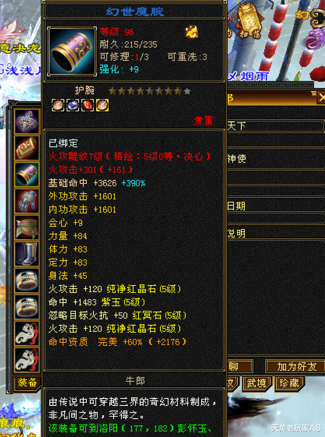 各位老铁,每个区总有那么几个ID运气爆棚,极品装备做了一件又一件,区内有名7级大佬身上也有他搓的手工他的名字。