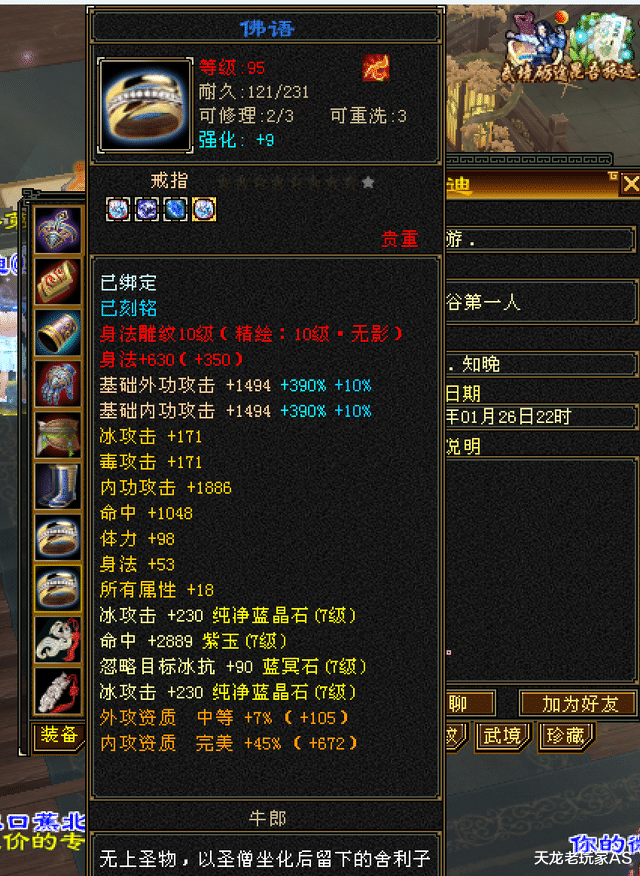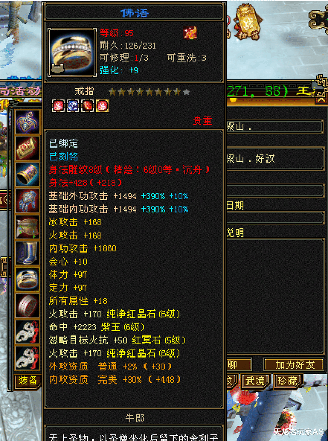 戒指虽然有点小,但也是完美词条!都小有瑕疵,但是逍遥君子这么顶的号愣是没换。
