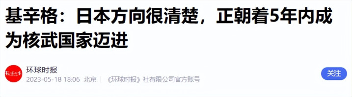 2.《基辛格:日本办法很明晰,正朝着5年内成为核武国度迈进》2023-05-18 18:06 | 开始:环球时报