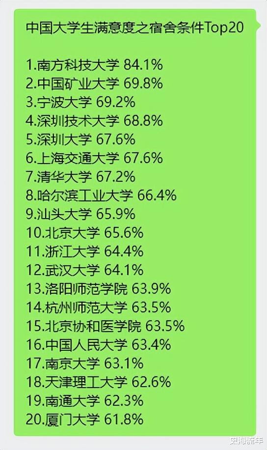 清华大学名挨次七位,北京大学名挨次十位。哈尔滨工业大学等顶尖高校,以及洛阳师范学院、杭州师范大学等场地院校也班师踏进前20,榜单末尾的厦门大学骄矜度为61.8%,合座来看,Top20高校的寝室条目骄矜度介于61.8%至84.1%之间,呈现出剖析的档次散播。