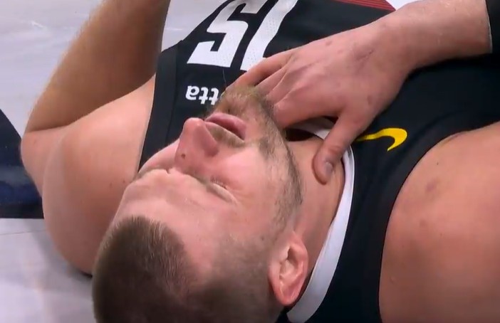 澳客app 缓一缓!凯尔登上篮时左手不测打到约基奇脖子位置 后者很祸患