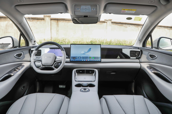 而在建设方面,这款车型所搭载的是智能化的座舱盘算,座舱内配备了10.25英寸全液晶姿色盘和15.6英寸悬浮式中控屏,同期内置高阶版DiLink 100智能车机系统,综划算力擢升至136K,按照这么的数据来看,硬件建设如实“顶”,而在践诺体验中,这套车机系统对小编来说亦然比拟纯属的,岂论是流通度如故功能性,再到智能化的体验,这款车型如实是在软件建设方面也有着彰着的上风,而我试驾的这款车型亦然全新版块,是以在车机系统以及硬件建设方面王人是较新的建设;
