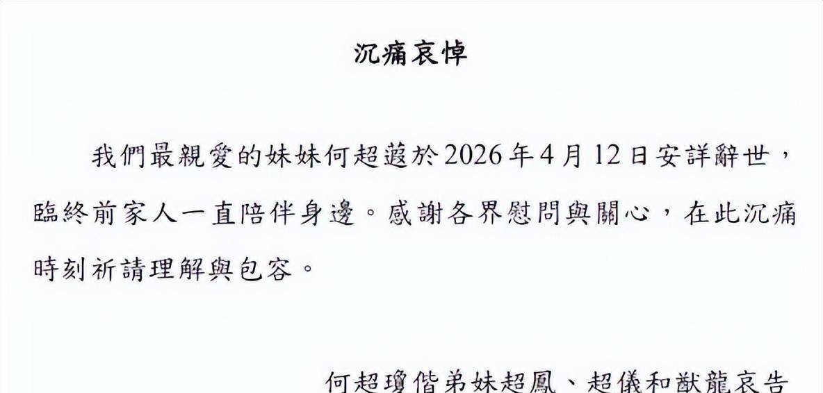 姐姐何超琼作念为家属发布哀悼声明,音信震悚各界。无数网友暗示惊愕!
