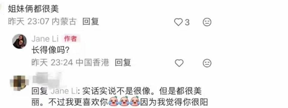 等于在这条动态底下,Jane主动向网友抛出了阿谁问题:“你们以为我和妹妹像吗? ”网友的回话确凿莫得夷犹:“不是很像,雅博体育app下载中国官网入口但都很好意思。 ”还有东谈主补充说,更可爱Jane,以为她阳光、广阔、大方。 这个平直的问答,一下子把姐妹俩的外貌对比推到了台前。